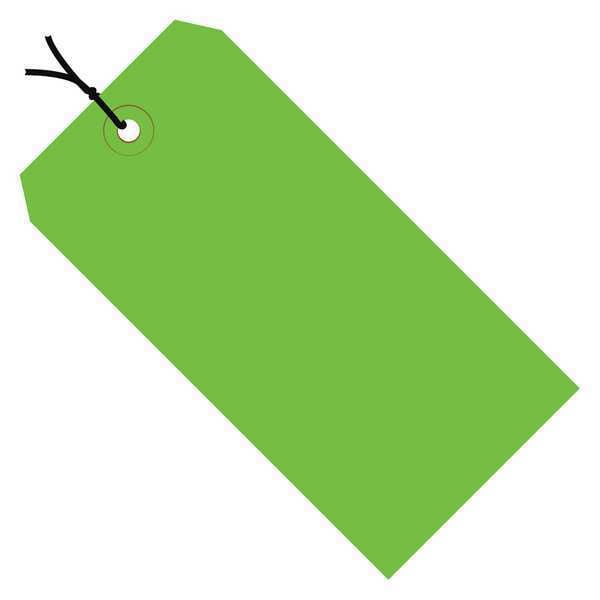 Shipping Tags, Pre-Strung, 13 Pt., 4 3/4" x 2 3/8", Green, PK1000