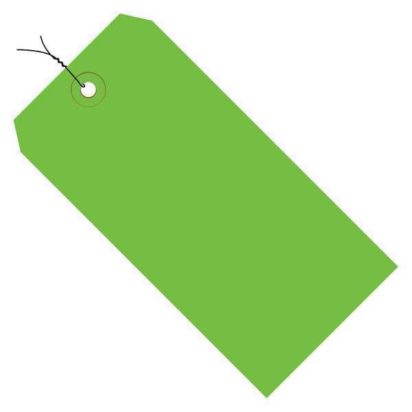 Shipping Tags, Pre-Wired, 13 Pt., 5 3/4" x 2 7/8", Green, PK1000