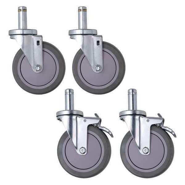 Swivel Casters, Polyurethane, 5" x 1 1/4", Gray, PK4