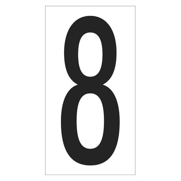 Vinyl Warehouse Number Labels, "8", 3 1/2", Black/White, PK50
