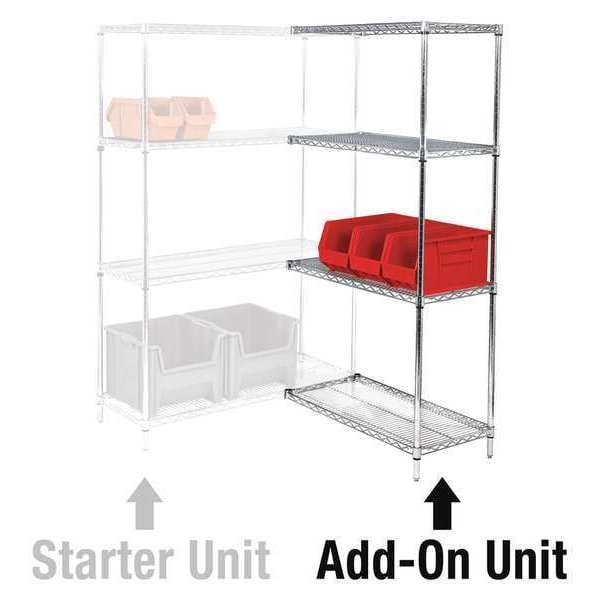 Wire Shelving Add-On Unit, 4 Shelf, 72" x 36" x 63", Chrome, 1/Each