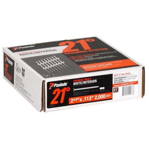 Collated Framing Nail, 2-3/8 in L, Not Applicable, Brite, Flat Head, 21 Degrees, 2000 PK (Discontinued)