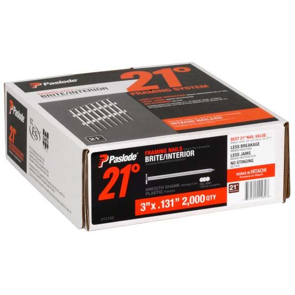 Paslode Collated Framing Nail, 3 in L, Not Applicable, Brite, Flat Head, 21 Degrees, 2000 PK 213162