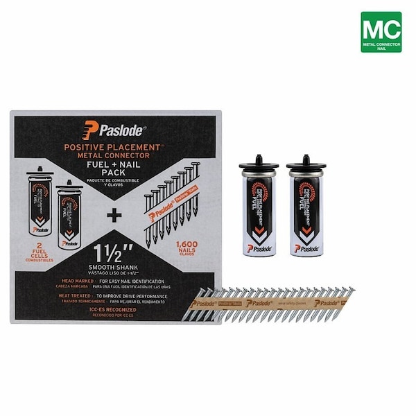Our Fuel + Nail Packs include the exact number of fuel cells needed to fire all the nails in the pack. The nails work like a fuel gauge when you drive all the nails, it's time for more fuel allowing you to maximize your productivity. Heat-treated metal connector nails with Pro-Strip collation are engineered for strength and consistent performance and are building code recognized for trust and confidence in the metal connector installation. The marked nail head provides an easy reference for inspectors to quickly identify installed fastener type.