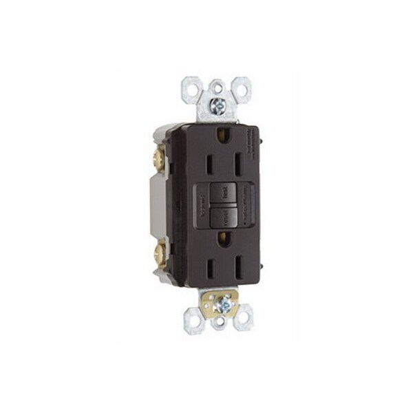 15A, 125V, Brown, 2 Pole, 3 Wire Grounding, Self Test GFCI Outlet, UL, CSA, Features Safe Lock Protection, If Critical Components Are Damaged Ground Fault Protection Is Lost Power To Receptacle Is Disconnected, Line Load Termination Supplied Backed Out Ready To Wire, Unbreakable Thermoplastic Construction, Window Box