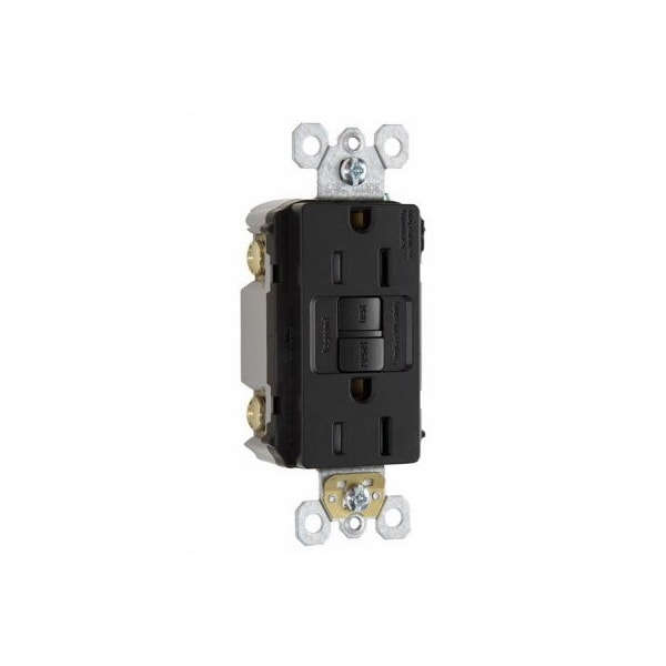 15A, 120V, Brown, Self Testing GFCI Receptacle, Tamper Resistant, Feed Through, Window Box