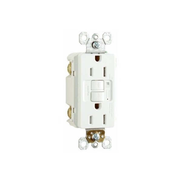 15A, 125V, White, Decorator Tamper Resistant Self Testing GFCI Receptacle, High Impact Resistant Thermoplastic Construction, Safelock Protection, With Audible Alarm To Meet Latest NEC Code