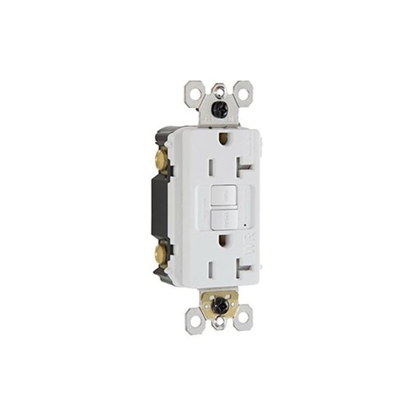 20A, 125V, White, Self Testing Tamper Resistant, Weather Resistant GFCI Receptacle, Feed Thru, Binding Screws Mounting Straps Ensure Superior Corrosion Resistance, UL Listed