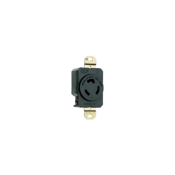 20A, 250V, Black, 2 Pole, 3 Wire Grounding, Locking Outlet, NEMA L6-20r, UL, Federal Specification, CSA, Compact Impact Resistant Nylon Face & Body, 1 Piece High Grade Brass Contact, Clearly Marked NEMA Configuration Rating & Third Party Listing On Each Unit's Face, Window Box.