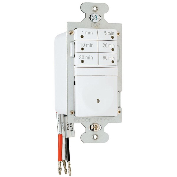 Timers turn loads off when no longer needed. This seven-button preset time switch has an adjustable time delay 1 5 10 20 30 60 minutes. It controls most types of lighting and has a lighted switch for visibility in darkened rooms. Manual on/off.