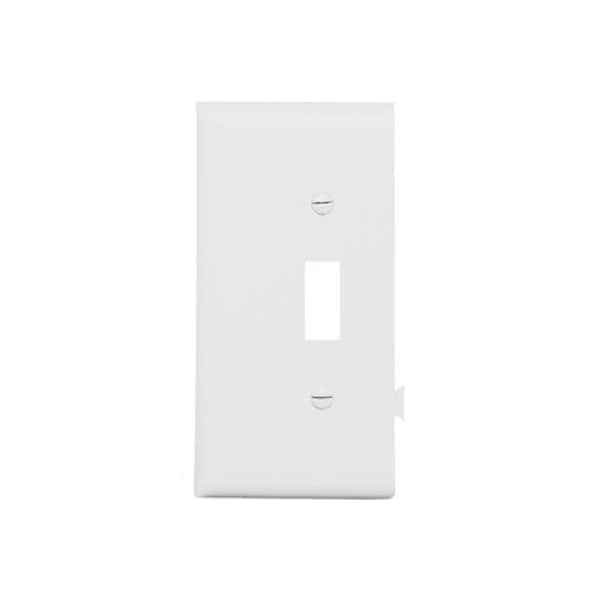 White, Toggle Opening End Section, Sectional Nylon Wall Plate, UL, Slightly Larger Than Standard Plates For Superior Coverage, Molded Of Rugged Practically Indestructible Self Extinguishing Nylon, Cello Wrap