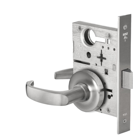 Grade 1 Passage Mortise Lock, 14 Lever, R Rose, Non-Keyed, Satin Chrome Finish, Field Reversible