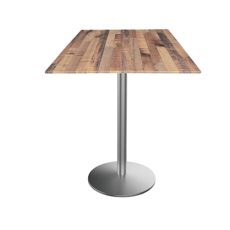 42 Tall OD214 St Steel Table Base w22 Dia Foot and 36x36 Square Rustic Top, IndoorOutdoor