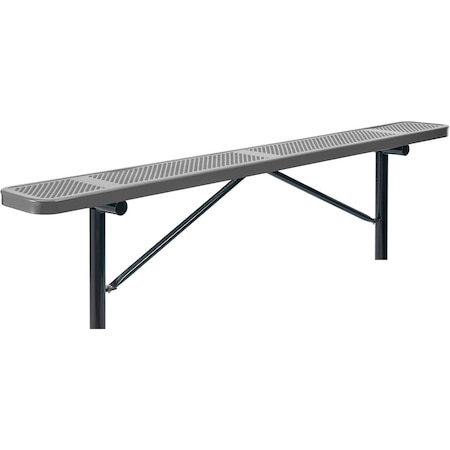 8' Outdoor Steel Flat Bench, Perforated Metal, In Ground Mount, Gray