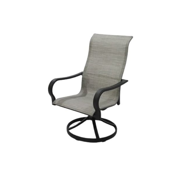 Four Seasons, Palermo sling swivel rocker Rustfree powder coated aluminum frames in a neutral grey with lowmaintenance sling fabric Matching CSpring Dining chair, Swivel rocker, 40 in square, 48 round table, 40x68 dining table, umbrella, umbrella base, and 3 piece bistro set are sold separately Assembled dimensions 2276 x 2512 x 4283