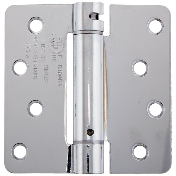 Is the architectural hardware with a proven record for exceptional service and quality. Our inventories are the largest selection of architectural and door hardware in over nine fine finIshes made from solid brass zinc aluminum steel and stainless steel. Features -Spring hinge Specifications - FinIsh: PolIshed Chrome - Material: Steel - Dimension: 4 x 4 x 0.25 in.
