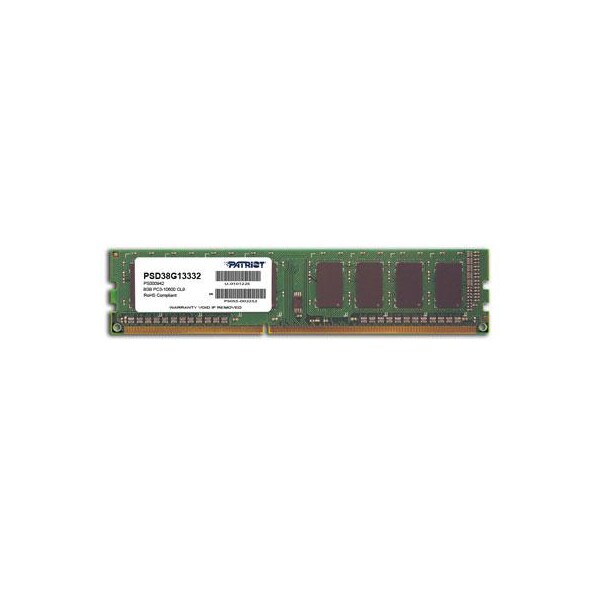 Patriot Signature DDR3 8GB CL9 PC3-10600 (1333MHz) DIMM. Compatible with Intel 2nd Gen CPUs (Intel 2000 Series) and AMD 9 series platforms, Patriot Memorys Signature Line DDR3 Non-ECC unbuffered memory delivers the quality, reliability, and performance expected for todays computer needs. These 8GB modules are designed to run at PC3-10600 (1333MHz) at CAS 9 latency timings. Built using specific build-of-materials (BOMs), Patriot Memory ensures that every module meets and exceeds industry standards; offering you a hassle free upgrade. We certify every component that goes into our modules which must pass strict standards to ensure compatibility, quality, and reliability. Backed by a and industry leading customer service, Patriot Memorys Signature memory modules are a perfect system upgrade option.