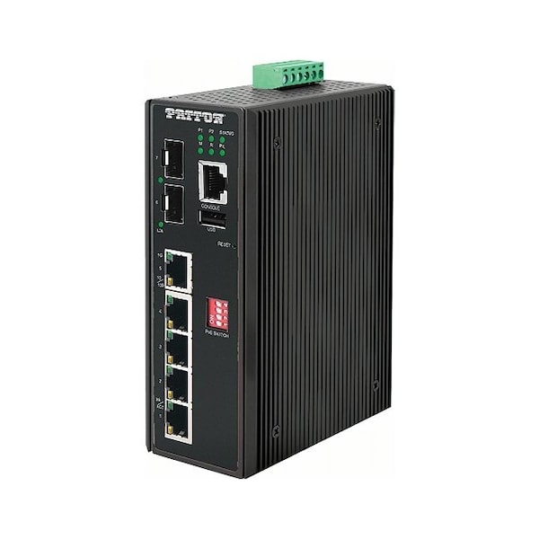 Patton FP2005E/2SFP/4BT/24DC Managed Industrial PoE+ Ethernet Switch; 1 x 10/100/1000; 4 x PoE BT 10/100/1000 90W/port; 2