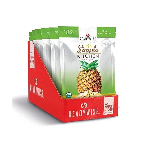 This box includes six pouches of Simple Kitchen's a ReadyWise Company brand freezedried organic pineapples No fake flavors or preservatives Pautzke FWORMORG