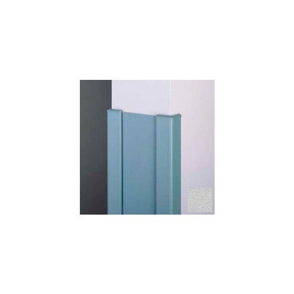 Surface mounted end wall 90 corners, 2'' wings, 4' height w/caps. 6" w, silver gray our cg-11 gives your end wall partitions extra protection with two cg-20 2" wing corner guards and our rigid vinyl wall covering strip as filler.
