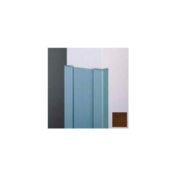 Surface mounted end wall 90 corners, 2'' wings, 4'h w/caps. 6" w, brown our cg-11r gives your end wall partitions extra protection with two cg-20 2" wing corner guards and our rigid vinyl wall covering strip as filler.