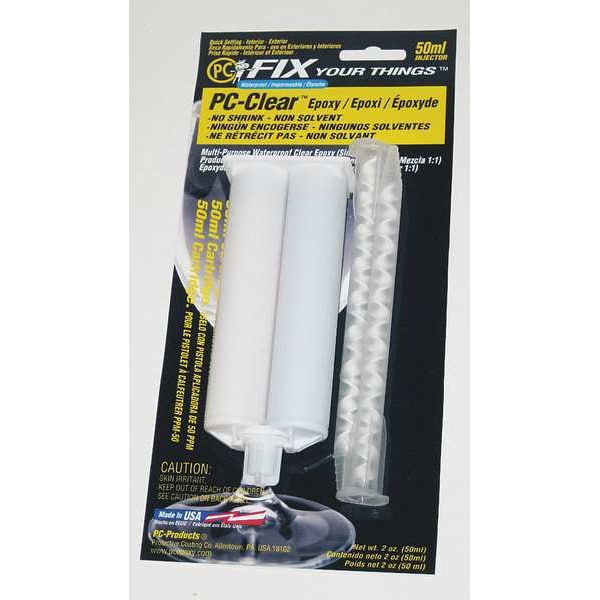 Epoxy Adhesive, Container Type Dual-Cartridge, Coverage 0.08 to 0.67 sq ft, Cure Method Ambient, Cured Color Clear, For Use With 50 mL Dispensing Gun, Hardener Volume 25 mL, Included Components Resin and Hardener, Interior/Exterior Interior/Exterior, Low Odor Yes, Marine Grade Yes, Materials Bonded Ceramic, Concrete, Fabric, Glass, Masonry, Metal, Wood, VOC Content Weight 0 g/L, VOC Content Weight Percentage 0 Percent, Water Resistance Waterproof, Working Time 4 min