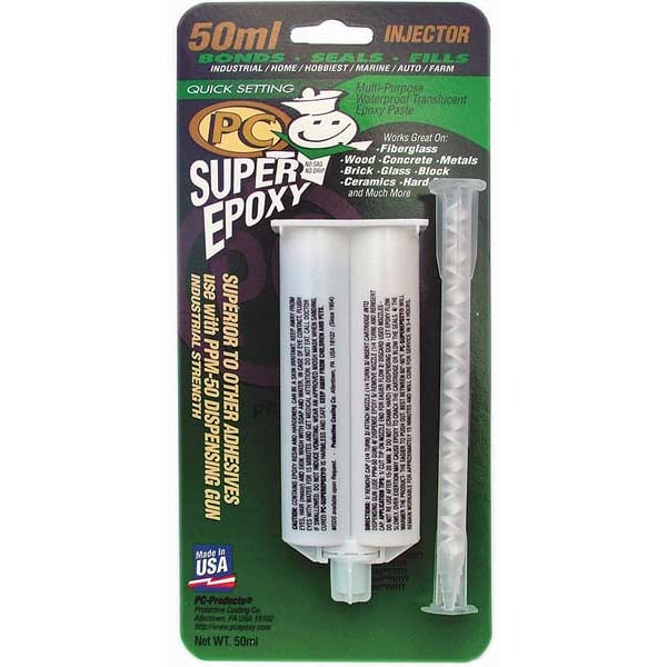 Epoxy Adhesive, Container Type Dual-Cartridge, Coverage 0.08 to 0.67 sq ft, Cure Method Ambient, Cured Color Clear, Features Impact Resistant, For Use With 50 mL Injector, Included Components Resin and Hardener, Interior/Exterior Interior/Exterior, Low Odor Yes, Marine Grade Yes, Materials Bonded Aluminum, Block, Brick, Ceramic, Concrete, Fiberglass, Glass, Masonry, Plastic, Steel, Wood, VOC Content Weight 0 g/L, VOC Content Weight Percentage 0 Percent, Water Resistance Waterproof