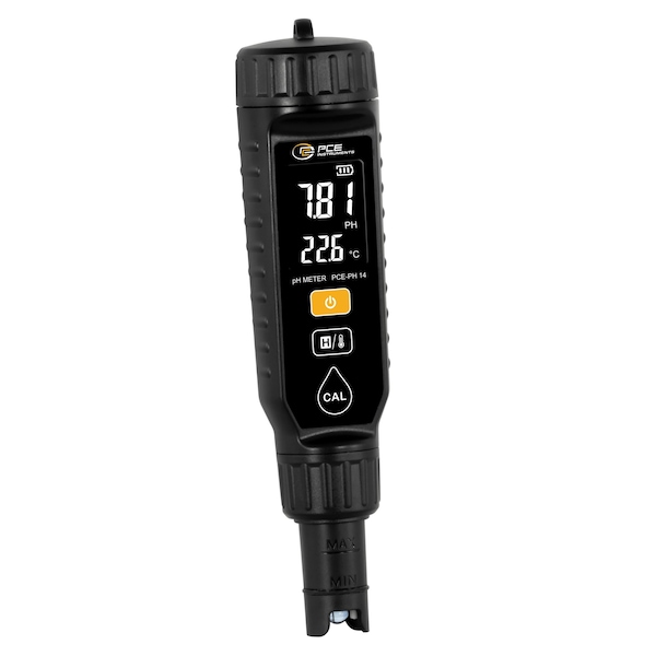 pH tester, 0-14 pH with 0.01 resolution, auto temp comp 32-140 deg. F and IP67 protection