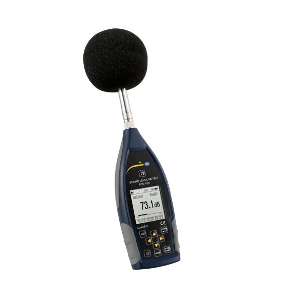 Class 2 Data-Logging Sound Level Meter Portable high-accuracy decibel meter with 1/1 octave band filter (optional 1/3 octave band filter upgrade) PCE-428 is a class 2 data-logging sound level meter that meets IEC 60651:1979, IEC 60804:2000. A, B, C and Z frequency weightings. Adjustable data-recording interval from 1 s to 24 h. Real-time numerical and graphical LCD display. Adjustable alarm.