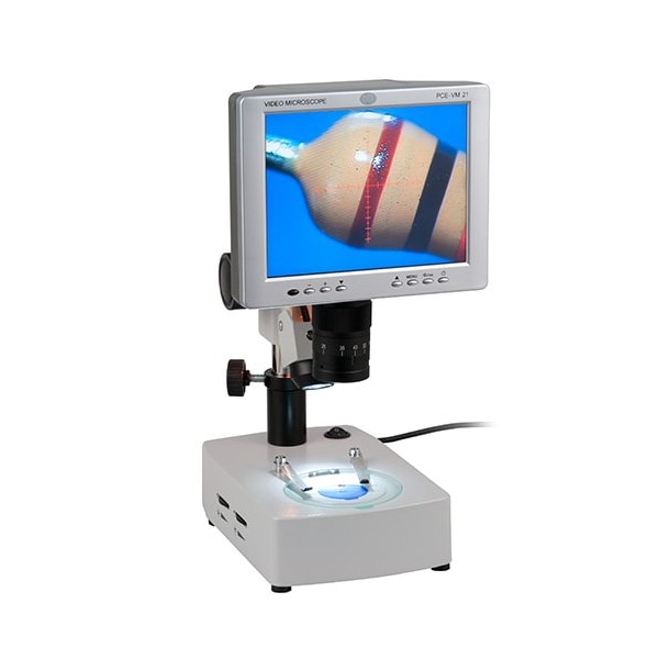 Workshop Multipurpose microscope ideal for electronics repair, quality assurance testing, medical instrument reprocessing inspections and more The Inspection camera consists of an optical microscope, CCD camera and LCD screen. Adjustable height for viewing of larger objects. Transmitted light and incident light illumination. Data transfer to PC via USB 2.0 connection. Data transfer to PC via USB 2.0 connection. Screen resolution of 800 x 600 pixels. Fixed-increment, crossed-scale reticle for orientation purposes. Direct viewing on the LCD display. Image recording functionality. Aluminum carrying case.