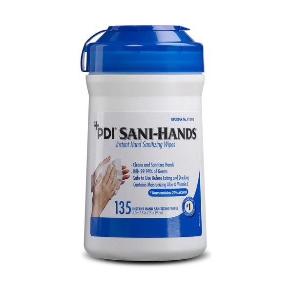 PDI HC Wipes, Hand Sanitizing, 135 Wipes/Can, 6''x7-1/2'', 12/CT, WE, WIPE,HAND,SANI-HANDS