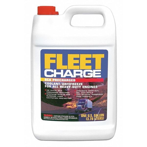 Antifreeze Coolant, Series FLEET CHARGE, Container Type Bottle, Container Size 1 gal, Concentration Type Concentrated, Base Formulation Ethylene Glycol, Color Fuschia, Freezing Point -34 Degrees F, Boiling Point 317 Degrees F, Biodegradable Biodegradable, Phosphate-Free Phosphate-Free, Silicate-Free Contains Silicate