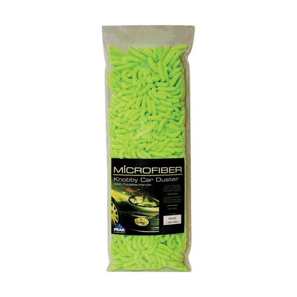 The Peak microfiber knobby car duster with foldable handle easily removes dust and light dirt with no water needed. And it stores easily with its foldable handle and reusable bag.