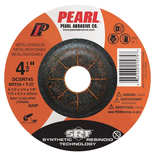 The SRT series uses a proprietary high performance grain and synthetic resinoid bonding technology for extremely long life and fast grinding. The SRT bond provides increased strength and durability, which reduces vibration and overall wheel efficiency. The SRT grain is very aggressive and it stays consistently sharp throughout the life of the wheel. The SRT is contaminate free and it is available as a standard grinding wheel or as a Pipeline style, combination cutting and light grinding wheel.- SRT bond is aggressive and it has a long working life- SRT abrasive remain sharp for better grinding efficiency and a consistent finish- Engineered to run cooler, producing a superior finish- Contaminate free- Also available as a pipeline style combination cutting and light grinding wheel