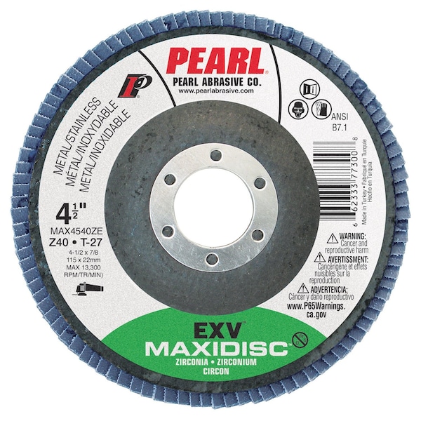 EXV Zirconia Maxidisc Flap Disc 4 1/2 x 7/8 Z40 T-27