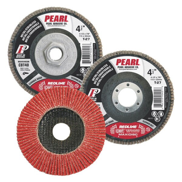 The Redline CBT MAXIDISC uses a non-fused ceramic abrasive that is extremely strong, aggressive and self-sharpening. CBT delivers an unmatched working life and very aggressive stock removal. The Redline CBT is an ultra high-performance solution for professional users who demand the very best._x000D_- Faster stock removal than aluminum oxide or zirconia abrasives _x000D_- Extremely strong CBTTM abrasive out lasts aluminum oxide or zirconia abrasives _x000D_- Self-sharpening for high performance grinding throughout the life of the wheel _x000D_- Exceptional performance on stainless steel and other high tensile alloys _x000D_- Contaminate free _x000D_