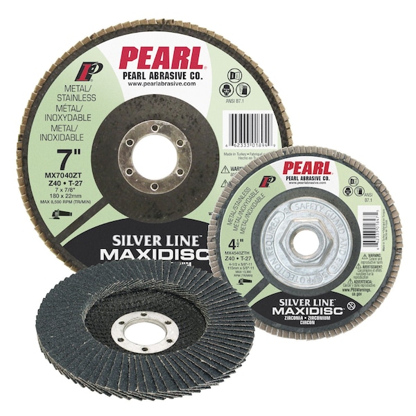 Silver Line MAXIDISC zirconia flap discs have a semi-flexible backer and use aggressive, long lasting zirconia abrasive. The Silver Line is known for consistent performance and value. The Silver Line is an excellent general purpose abrasive solution._x000D_- Zirconia abrasive grinds quickly and has a long working life _x000D_- Semi-flexible backer for added versatility _x000D_- Consistent performance _x000D_