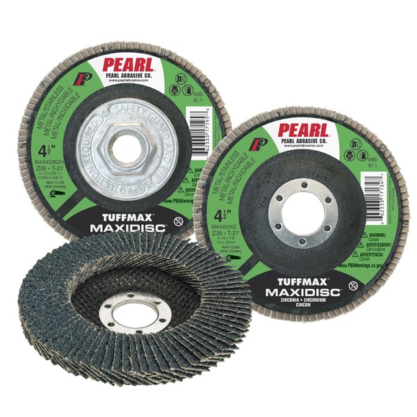 The TUFFMAX MAXIDISC was designed for fast and heavy stock removal. The TUFFMAX uses aggressive zirconia abrasive and a more rigid backer for applications that require heavy stock removal and rapid grinding-Zirconia abrasive grinds quickly and has a long working life-Designed for heavy stock removal-Contaminate free