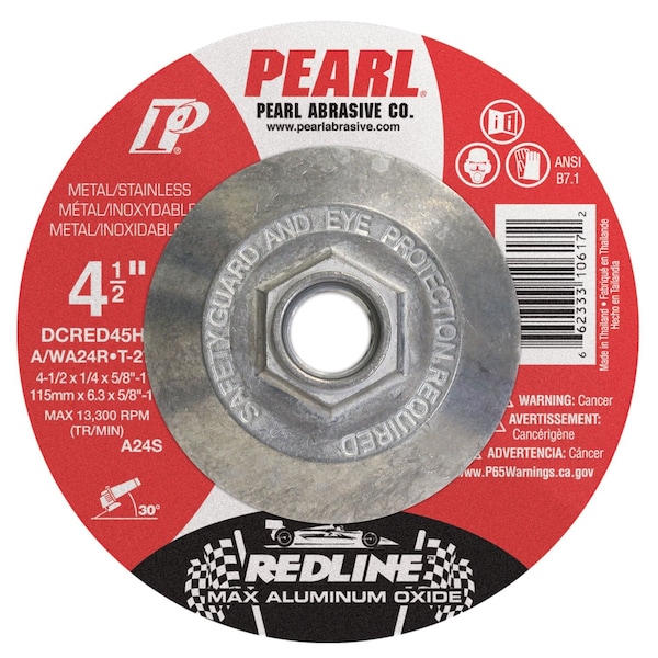 The Redline uses Pearl's exclusive MAX A.O. abrasive grain, MAX A.O. was engineered to offer aluminum oxide users a higher performance alternative at a competitive price point. The Redline MAX A.O. abrasive grain properties and premium resin bond technology truly sets it apart from the competition by maximizing the performance available with an aluminum oxide product. The Redline is available as a standard grinding wheel or as a Pipeline style, combination cutting and light grinding wheel.-Innovative MAX-A.O. abrasive is 33% more efficient than standard aluminum oxide-Grinds cooler with less vibration-Also available as a pipeline style combination cutting and light grinding wheel