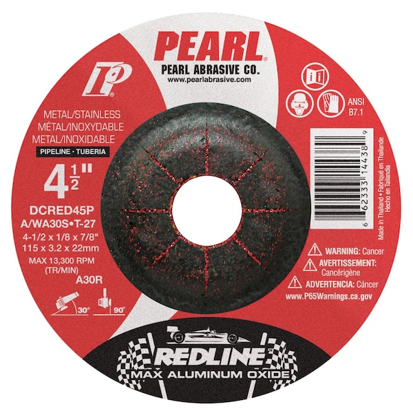 The Redline uses Pearl's exclusive MAX A.O. abrasive grain, MAX A.O. was engineered to offer aluminum oxide users a higher performance alternative at a competitive price point. The Redline MAX A.O. abrasive grain properties and premium resin bond technology truly sets it apart from the competition by maximizing the performance available with an aluminum oxide product. The Redline is available as a standard grinding wheel or as a Pipeline style, combination cutting and light grinding wheel.-Innovative MAX-A.O. abrasive is 33% more efficient than standard aluminum oxide-Grinds cooler with less vibration-Also available as a pipeline style combination cutting and light grinding wheel