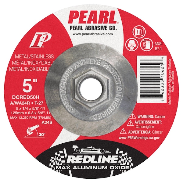 The Redline uses Pearl's exclusive MAX A.O. abrasive grain, MAX A.O. was engineered to offer aluminum oxide users a higher performance alternative at a competitive price point. The Redline MAX A.O. abrasive grain properties and premium resin bond technology truly sets it apart from the competition by maximizing the performance available with an aluminum oxide product. The Redline is available as a standard grinding wheel or as a Pipeline style, combination cutting and light grinding wheel.-Innovative MAX-A.O. abrasive is 33% more efficient than standard aluminum oxide-Grinds cooler with less vibration-Also available as a pipeline style combination cutting and light grinding wheel
