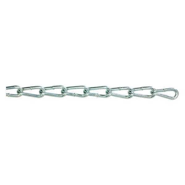 Straight Chain, Chain Type Machine Chain, Material Carbon Steel, Lifting Capability Not for Lifting, Working Load Limit 270 lb, Trade Size 3 in, Link Inside Length 5/8 in, Link Type Straight, Link Inside Width 1/4 in, Overall Length 100 ft, Links per Foot 21, Includes Hook No Hook Included, Hook Type Included Not Applicable, Finish Zinc Plated, Material Thickness 9/64 in, Weight per Foot 0.15 lb, Welding Type Welded, Standards NACM