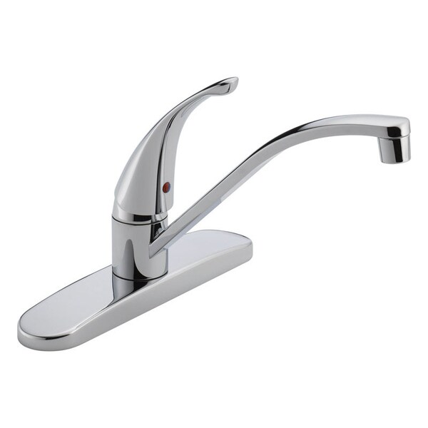 This choice single-handle kitchen faucet in chrome is an easy and affordable way to update the look of your kitchen. Its simple design complements a variety of design styles. The included escutcheon completes the ensemble for a more finished look.