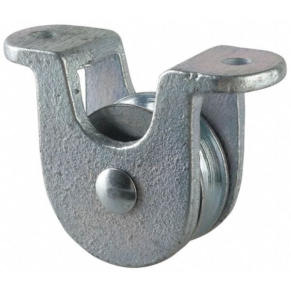 Pulley Block, Product Type Open Deck Pulley Block, Pulley Type Mounted, Mount Type Upright Mount, Working Load Limit Not Rated, Operation Lifting, Pulling, Attachment Type Bolt-On, Compatible Rope Diameter 1/2 in, Sheave Inside Diameter 1 17/32 in, Sheave Depth 19/32 in, Sheave Outside Diameter 2 in, Compatible Rope Type Fibrous Rope, Bearing Type Sleeve, Attachment Inside Diameter Not Applicable, Housing Material Steel, Mounting Hole Diameter 7/32 in, Number of Grooves 1, Sheave Material Steel