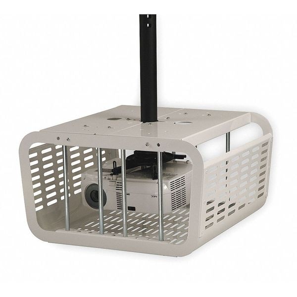 Projector Enclosure, Color White, Finish Matte, Material Steel, Overall Width 22 3/8 in, Overall Height 12 5/8 in, Overall Depth 20 1/2 in, Includes Mounting Hardware Yes, Features Adjustable bars accommodate projector lens placement, Includes -