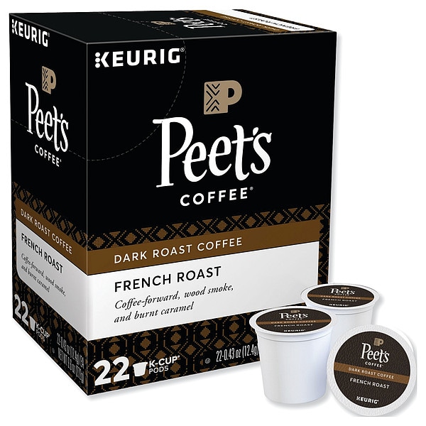 Coffee, Net Weight 9.46 oz, Beverage Package Style Pod, Coffee Roast/Tea Type Dark, Package Weight 0.43 oz, Sub-Brand Peet's Coffee & Tea(R), Beverage Flavor French Roast, Product Type Coffee, Caffeine Type Caffeinated, Beverage Format Ground, Package Quantity 22