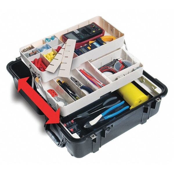 This PELICAN PRODUCTS INC. 20.85"L x 12.73"W x 12-3/4" Overall Depth Black Padded Divider Case is the perfect way to protect your tools while on the go. Made of polypropylene, this padded divider case is both durable and lightweight. It has rubber over molded handles for a comfortable grip when transporting it from place to place. The polymer O ring provides an airtight and water tight seal so you can transport liquids in this case without worrying about leakage or spillage. You will be glad you brought along this PELICAN PRODUCTS INC Black Padded Divider Case when travelling with your tools.