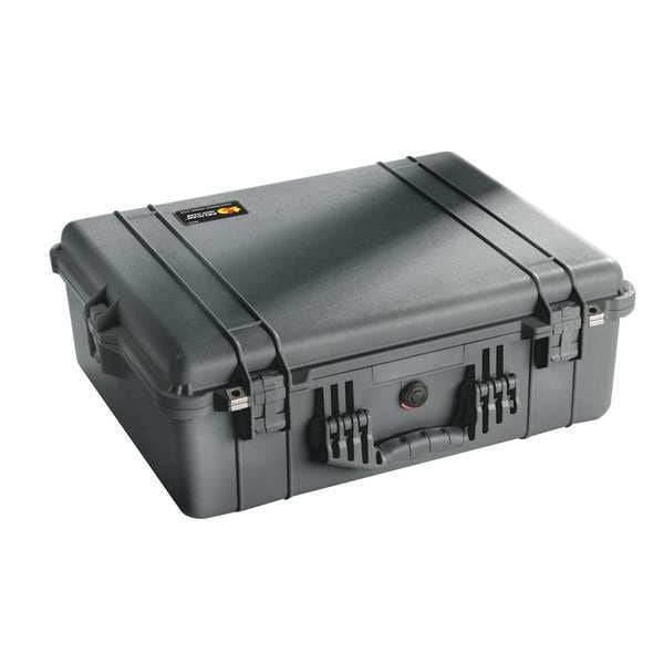 This Pelican 1600-001-110-G Protective Case is the perfect way to store your tools. It has an overall depth of 8 5/8 in., overall length of 24 1/4 in., and overall width of 19 1/2 in. The case has a carrying handle made from rubber over molded handles for easy transportation. It also features a snap latch system with double throw latches, which are recessed to protect them from damage during transport. The black polypropylene material ensures that this case is tough enough to keep your tools safe. If you need a hard case storage option, this Pelican 1600-001-110-G Protective Case will be just what you are looking for.
