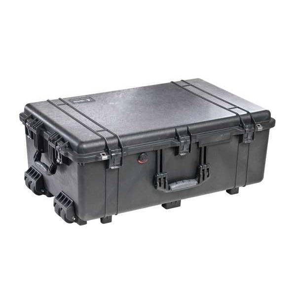 Protective Case, Bottom Depth 8 7/8 in, Closure Type Double Throw, Color Black, Electrostatic Discharge Not Electrostatic Discharge Conductive, Foam Design No Foam, Handle Style Folding, Telescoping, Includes Foam Insert Foam Insert Not Included, Inside Depth 10 5/8 in, Inside Length 28 5/8 in, Inside Width 17 1/2 in, Lid Depth 1 7/8 in, Material Plastic, Maximum Operating Temperature 210 Degrees F, Minimum Operating Temperature -40 Degrees F, Number of Latches 7, Number of Wheels 4