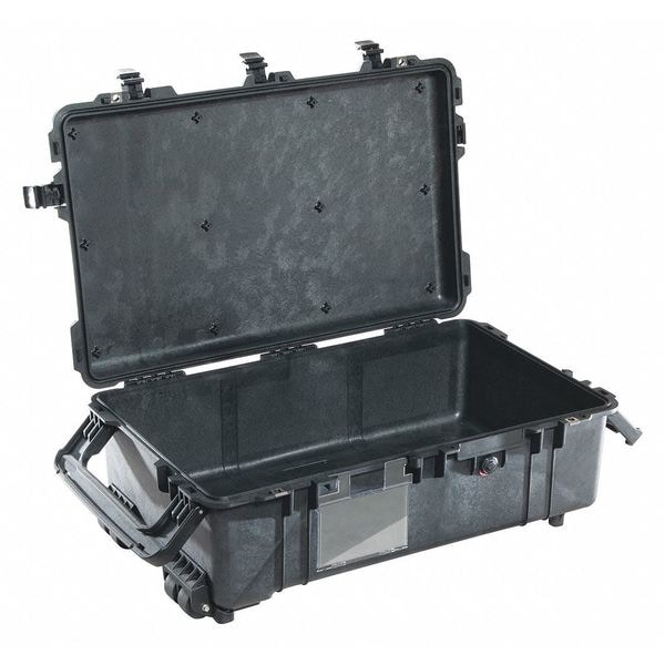 Protective Case, Bottom Depth 7 3/8 in, Closure Type Double Throw, Color Black, Electrostatic Discharge Not Electrostatic Discharge Conductive, Foam Design No Foam, Handle Style Folding, Telescoping, Includes Foam Insert Foam Insert Not Included, Inside Depth 9 1/4 in, Inside Length 28 1/8 in, Inside Width 16 1/2 in, Lid Depth 1 3/4 in, Material Plastic, Maximum Operating Temperature 210 Degrees F, Minimum Operating Temperature -40 Degrees F, Number of Latches 4, Number of Wheels 4